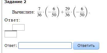 Напиши 7/36 * (-6/50) под одной дробью, сократи значения 6 и 36, множишь 7*1 и 6 на 50. Получается - 7/300. Со вторым аналогично, получится -29/300. Добавляешь, выходит - 36/300. Сокращаешь, получится - 3/25