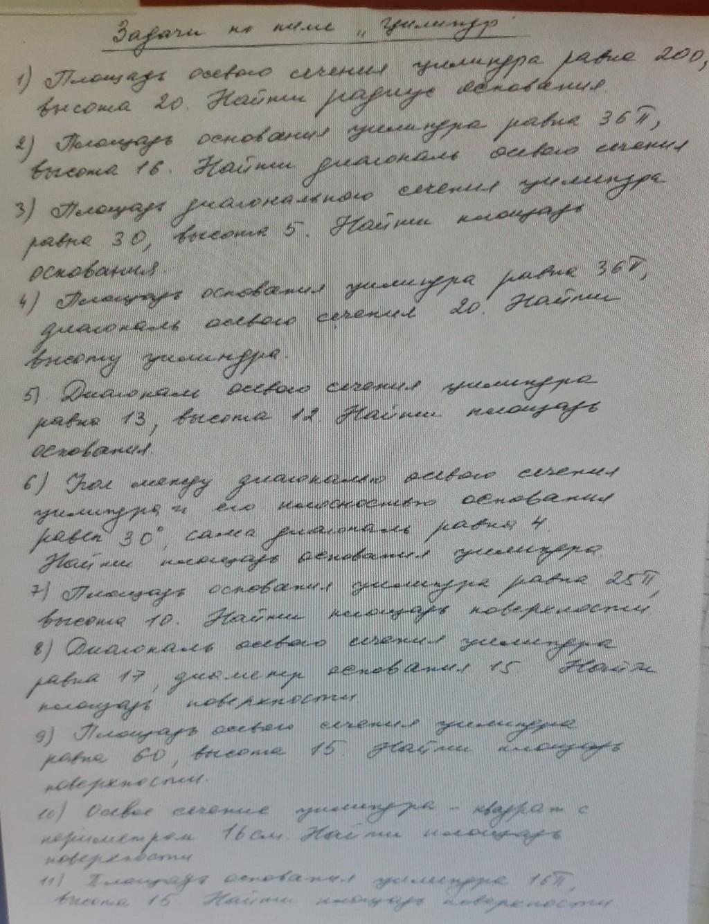 1) Площадь осью сечения цилиндра равна 200, высир 20. Найти радиус основания.