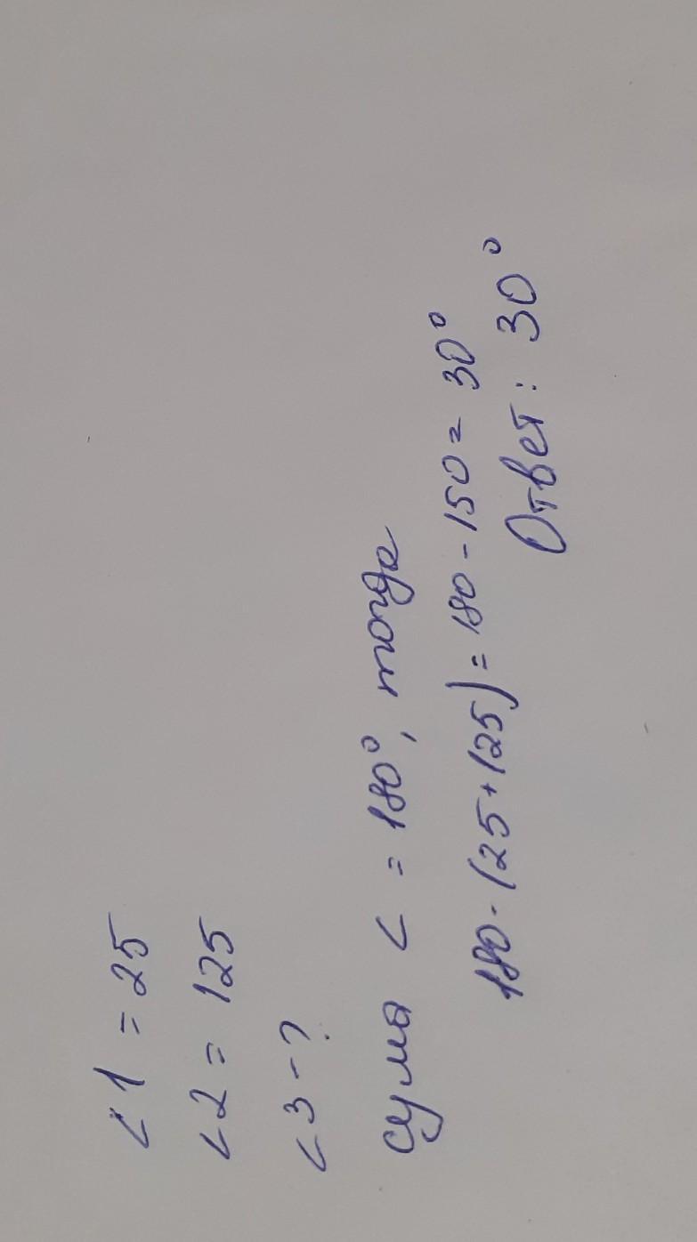 ответ на фото.ответ 30 градусов.задача очень простая,надо просто знать правила про углы треугольника, надеюсь правила выучишь и будешь решать на к.р. сам и на отлично)))успехов!!!