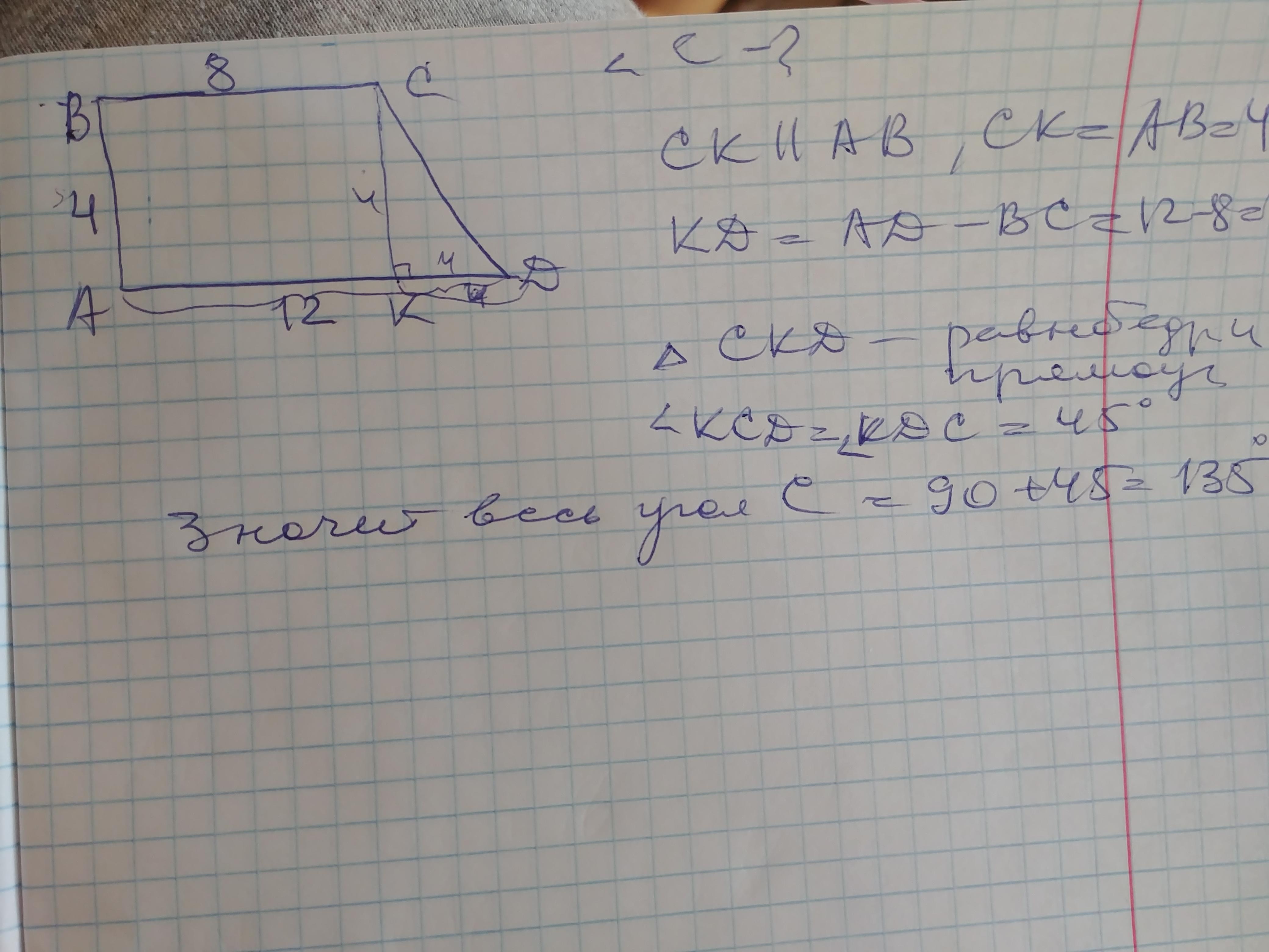 ZA =90°AB= 4 см, ВС =8 см, AD =12 см
