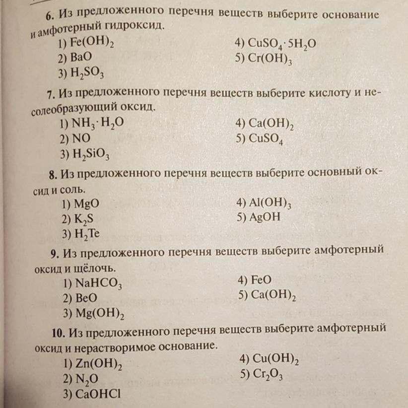 6) 1,5. 7) 2,3. 8) 1,2. 9) 2,5. 10) 1,4,5