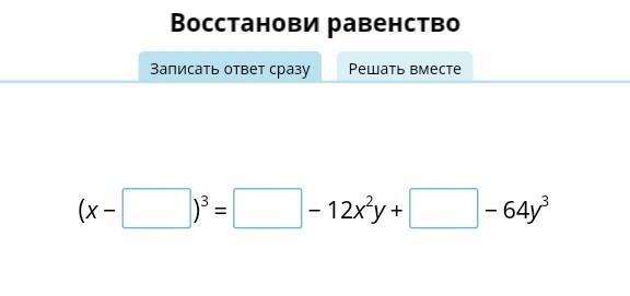 (х-4у)³=х³-3*х²*4у+3х*16у²-64у³=