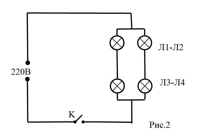 Вторая пара ламп подключается параллельно первой паре. См. рис. 2