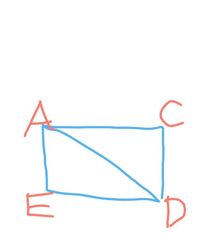 На рисунке изображен прямоугольный треугольник ADE. Постройте фигуру, симметричную ему относительно прямой AD.