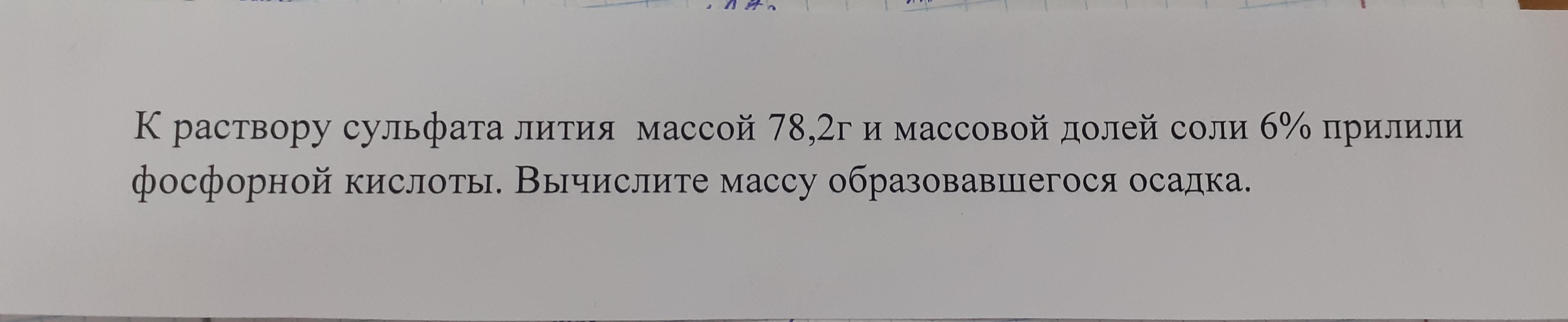 к раствору сульфата лития массой 78.2 кг и массовой долей соли 6% прилили фосфорной кислоты. вычислите массу образовавшегося осадка