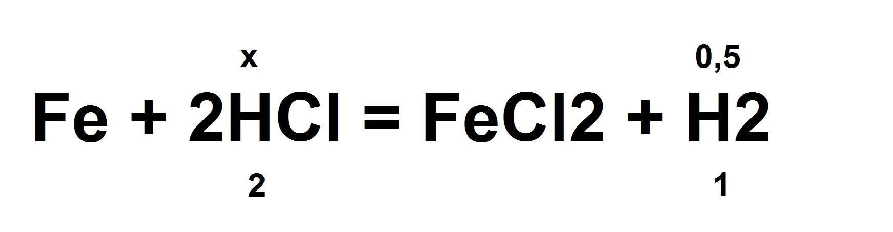 За х обозначим n соляной кислоты (сверху). Снизу поставим коэффициент 2, стоящий перед молекулой.