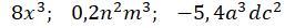 -5,4a³dc² = -5,4 * a * a * a * d * c * c.