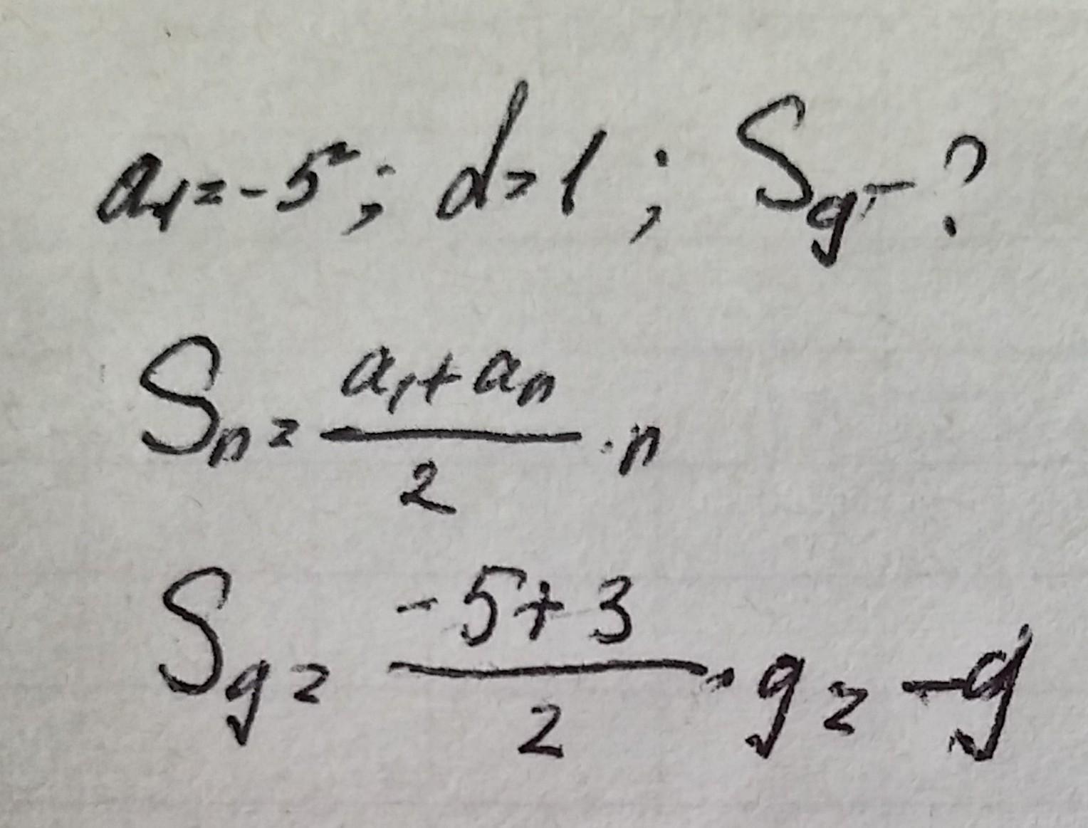 Представим в виде арифметической прогрессии, с d равным 1, тогда первый член арифметической прогрессии a1= -5, а а9 равно 3, по условию.