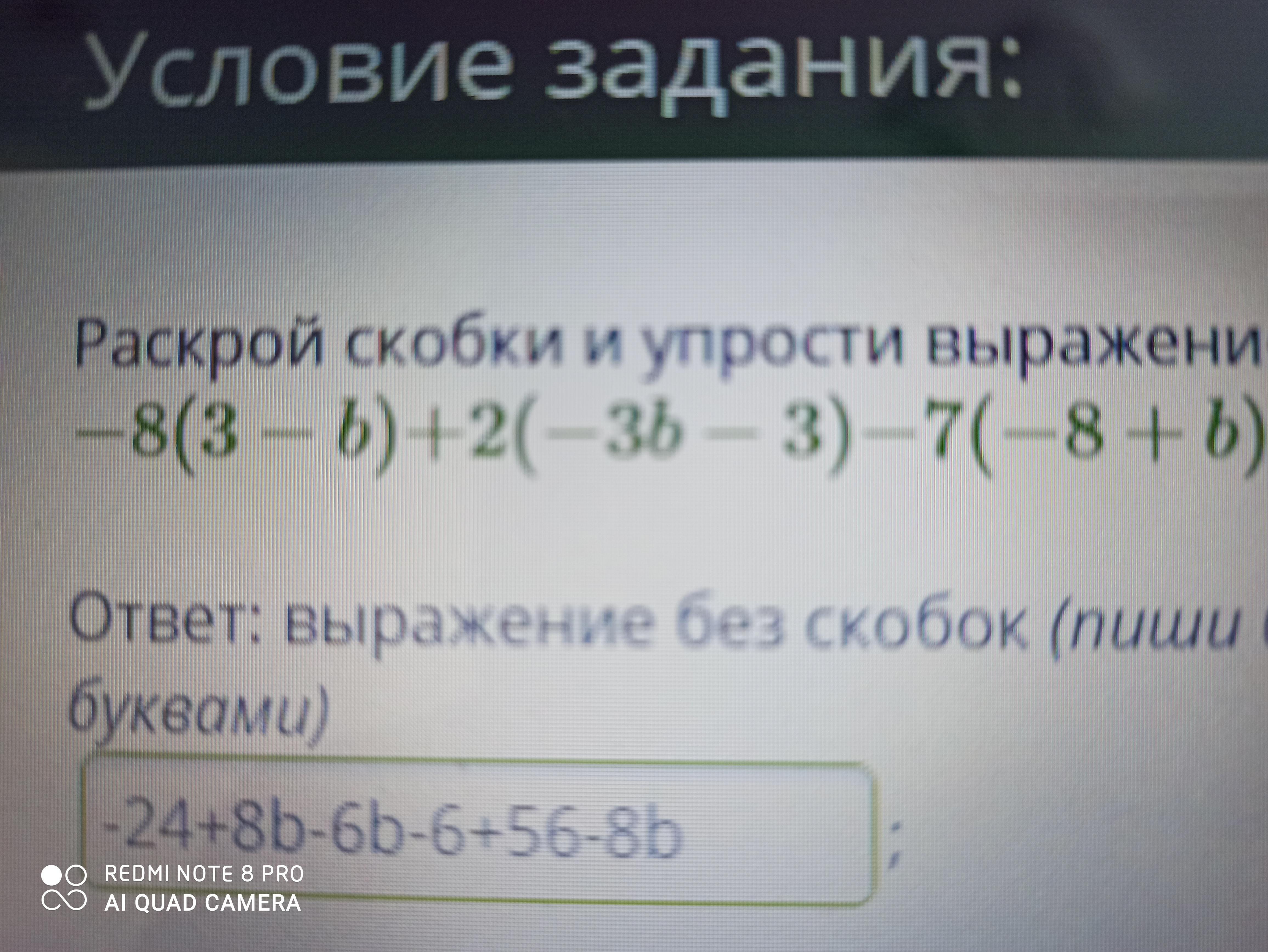-8(3-b)+2(-3b-3)-7(-8+b)=