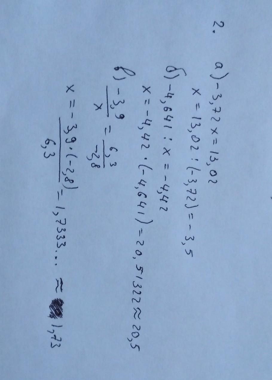 1) х= 13,02:(-3,72)