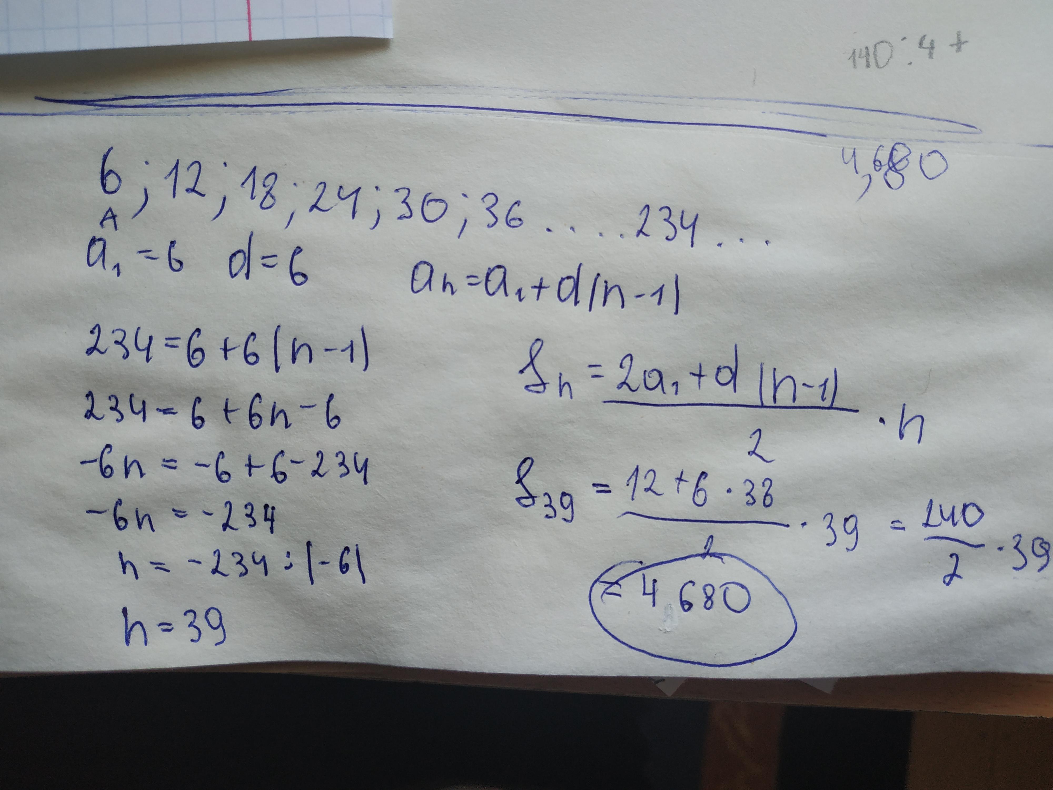 Сначала находим под каким номером стоит число 234,а потом сумму по формуле