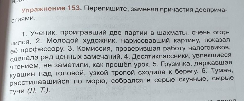 Ученик очень огорчился, проиграв две партии в шахматы. Нарисовав картину, молодой художник показал ее профессору. Комиссия сделала ряд ценных замечаний, проверяя работу налоговиков. Увлекшиеся чтением десятиклассники, не заметили, как прошел урок. Грузинка узкой тропой сходила к берегу, держа кувшин над головой. Расстилавшийся по морю туман, собрался в серые скучные, сырые тучи