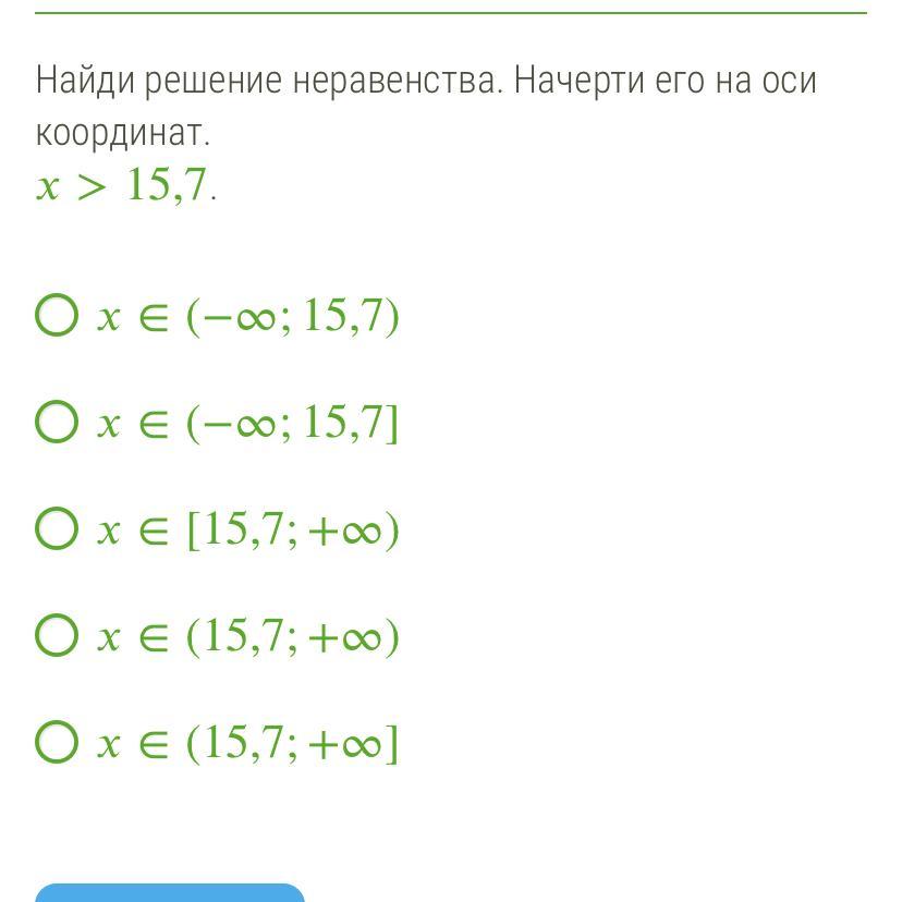 так как х больше 15,7 , но 15,7 не входит в числовой промежуток.