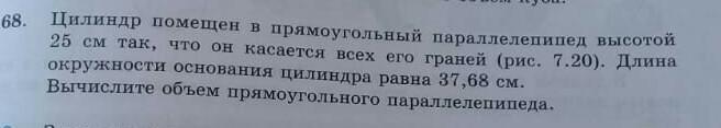 цилиндр помещен в прямоугольный параллелепипед высотой 25 см так что он касается всех его граней...