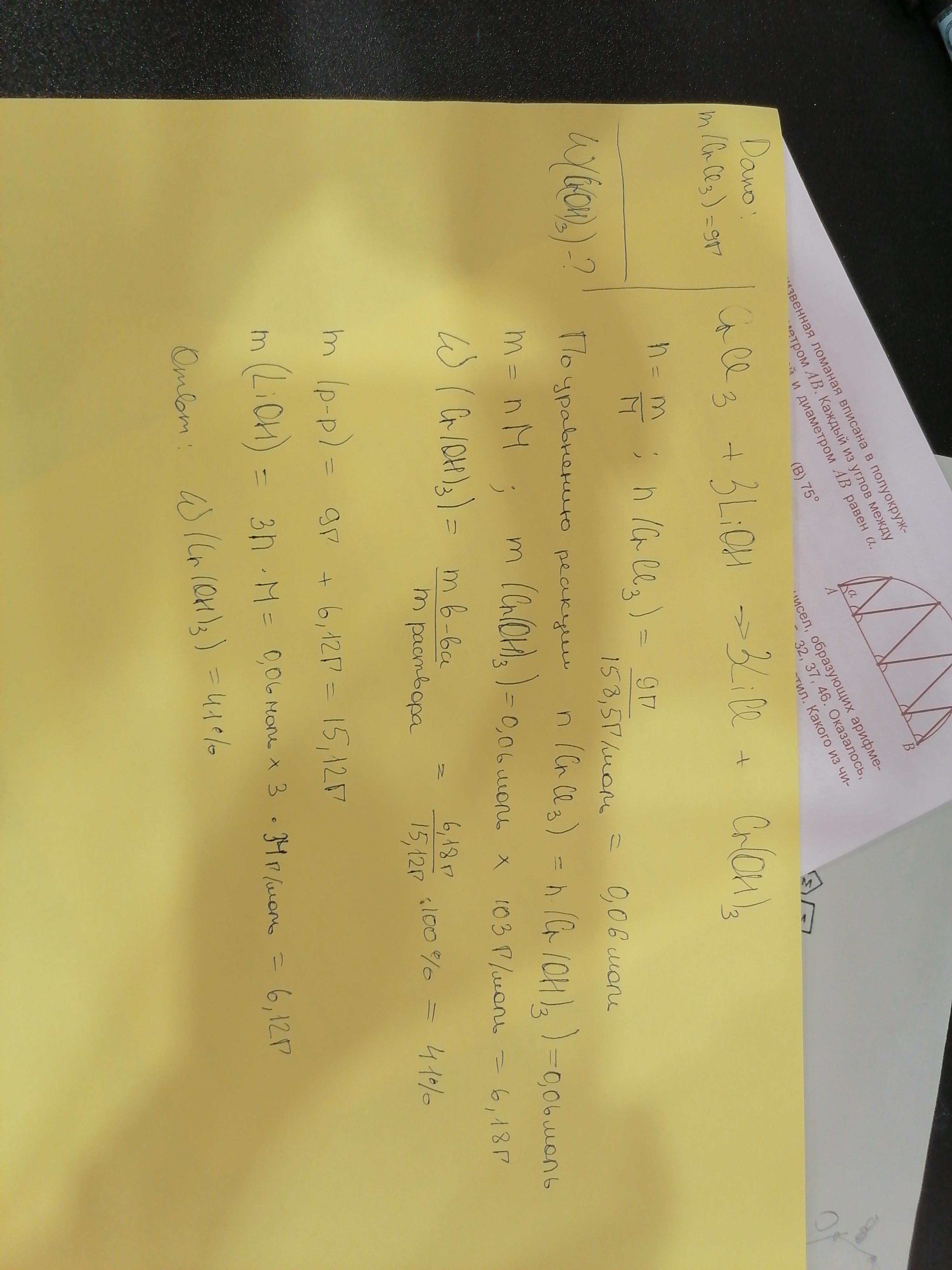 Вычислите массовую долю осадка, который образует при сливании растворов, содержащих 9 г хлорида хрома (III) и избытка раствора гидроксида лития