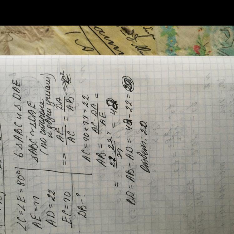 рассмотрим два треугольника, найдем соотношение как подобные треугольники, выразим аб и найдем сторону бд