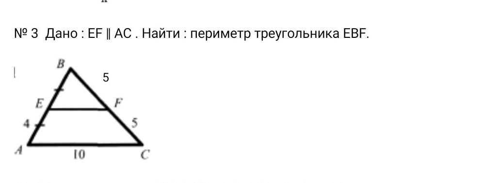 Получаем: EB=4, BF=5, EF=5 => периметр треугольника EBF = 4+5+5 = 14