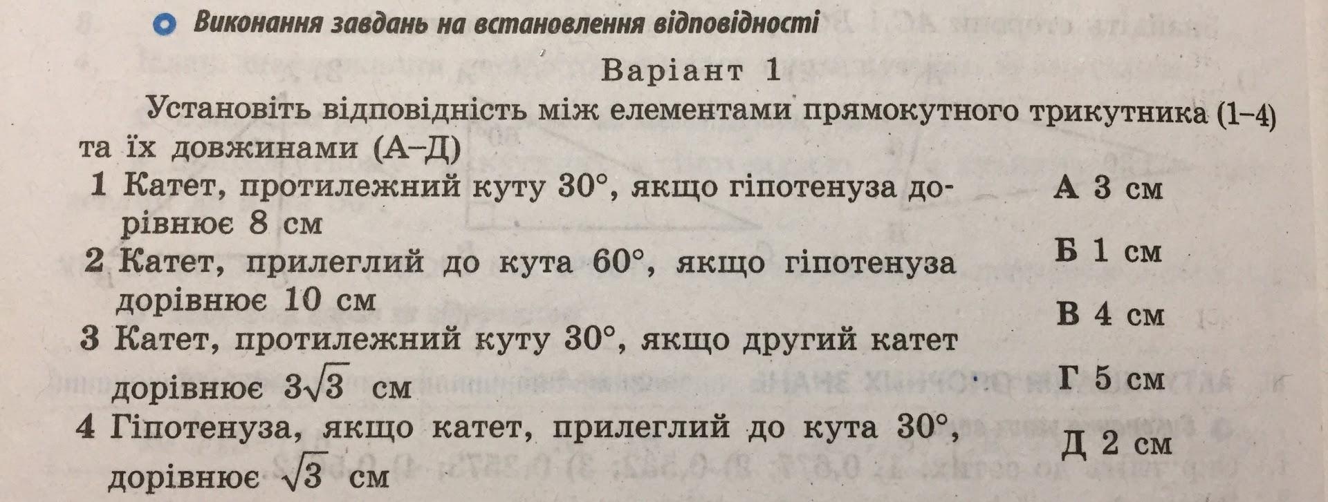 sin30° = x/8 ⇒ x = 1/2·8 = 4 см