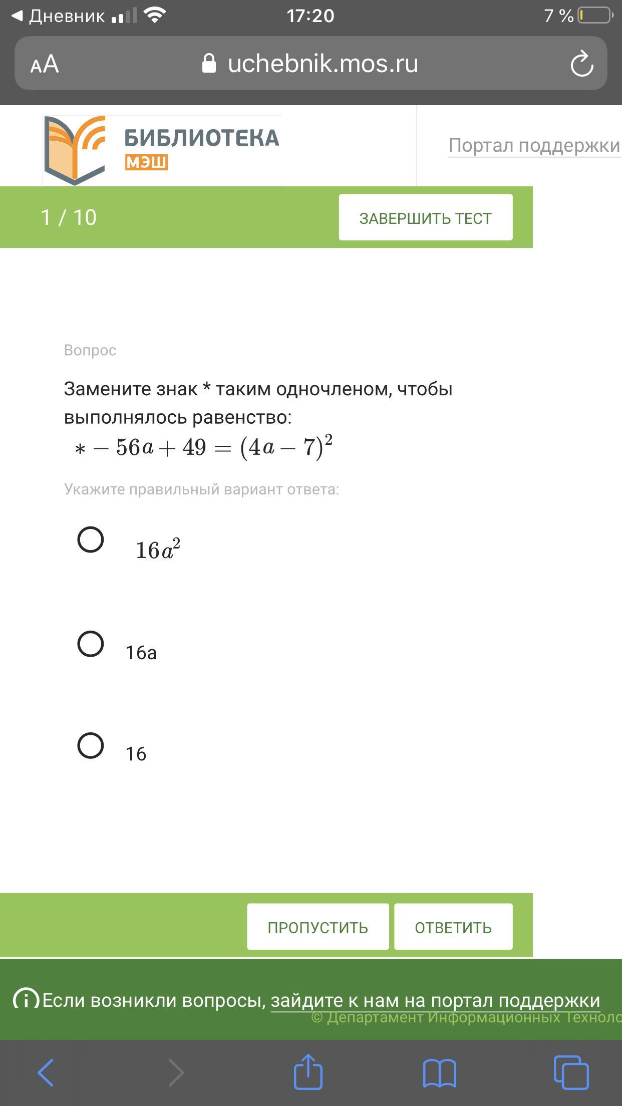 Замените знак * таким одночленом, чтобы выполнялось равенство: ∗-56a+49=(4a-7)^2