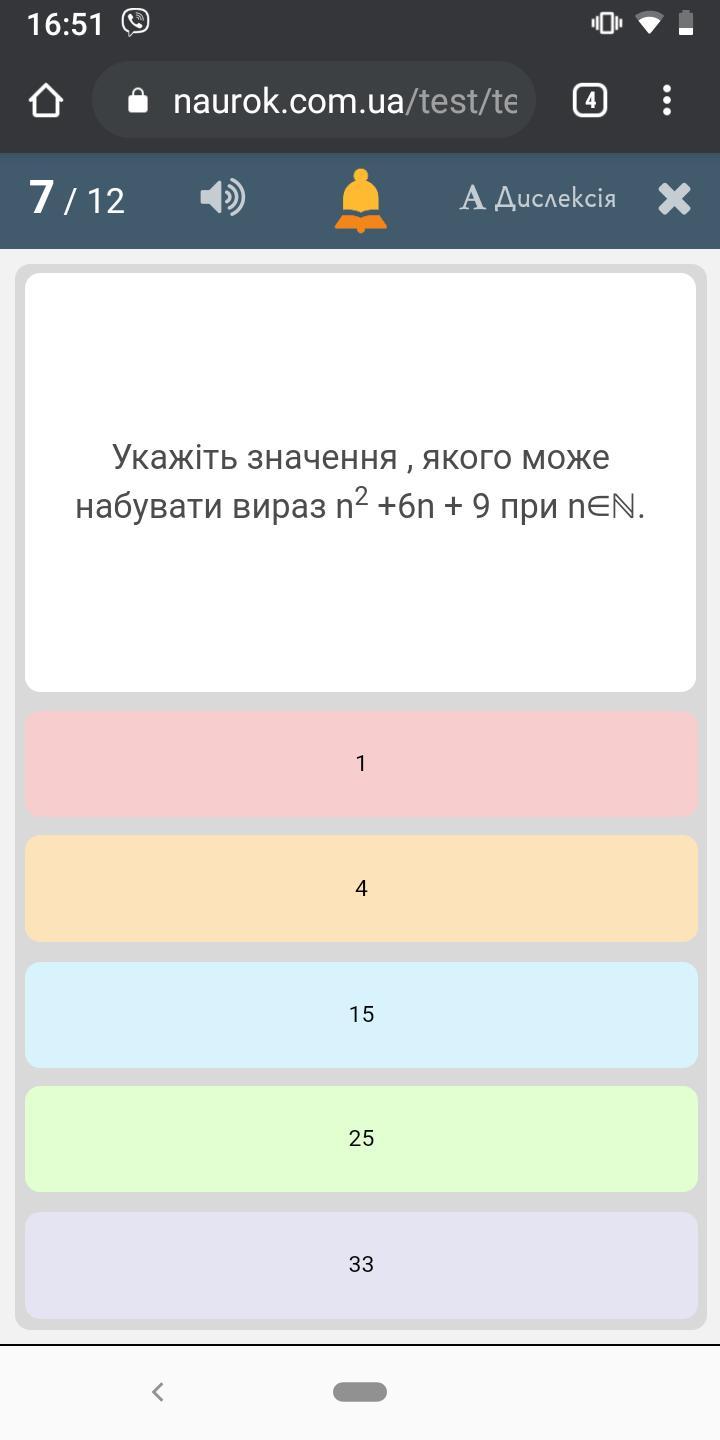 (n+3)²=25 при n=2 и при n=-8, но -8∉N ,а 2∈N⇒ 25- может быть значением выражения n²+6n+9