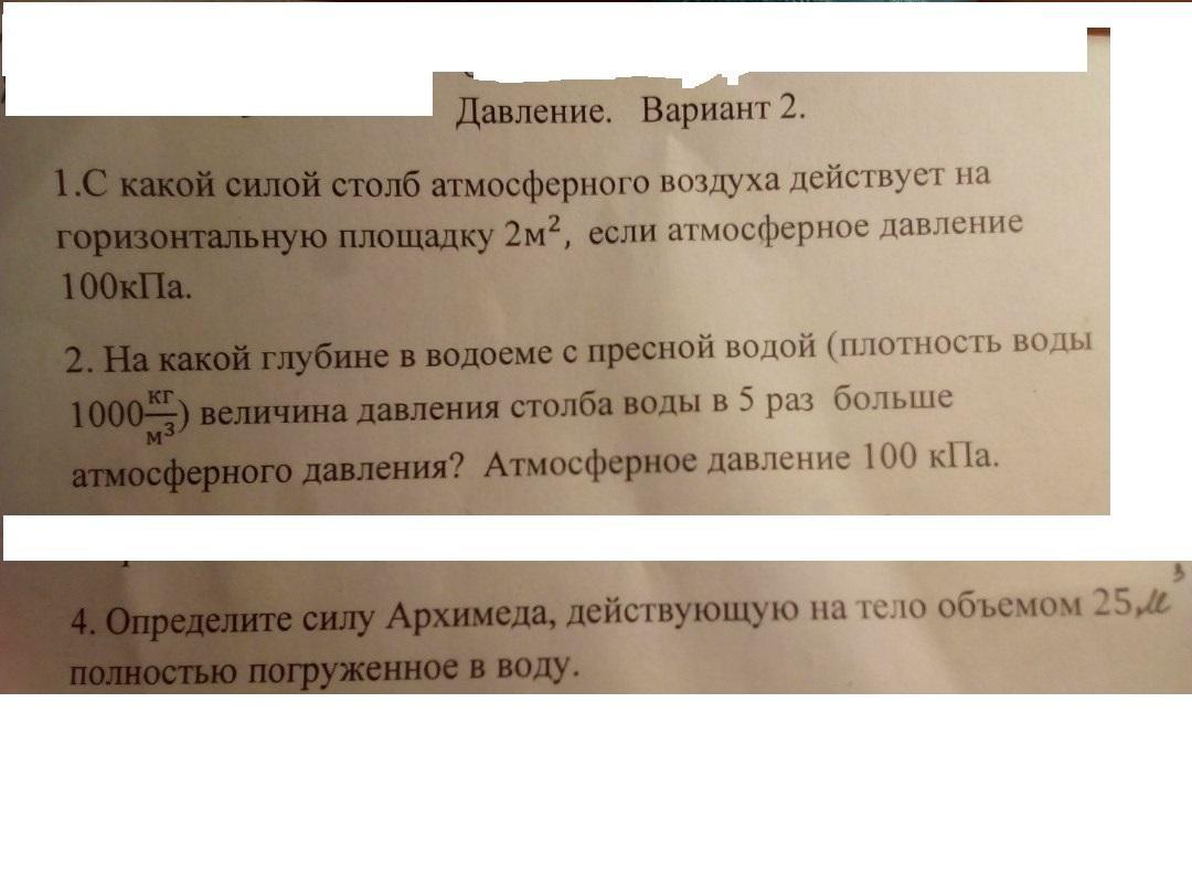 2). Давление воды увеличивается на одну атмосферу (100 кПа) при погружении на каждые 10 м. Очевидно, что давление воды, равное 5 атмосферам будет на глубине 50 м: