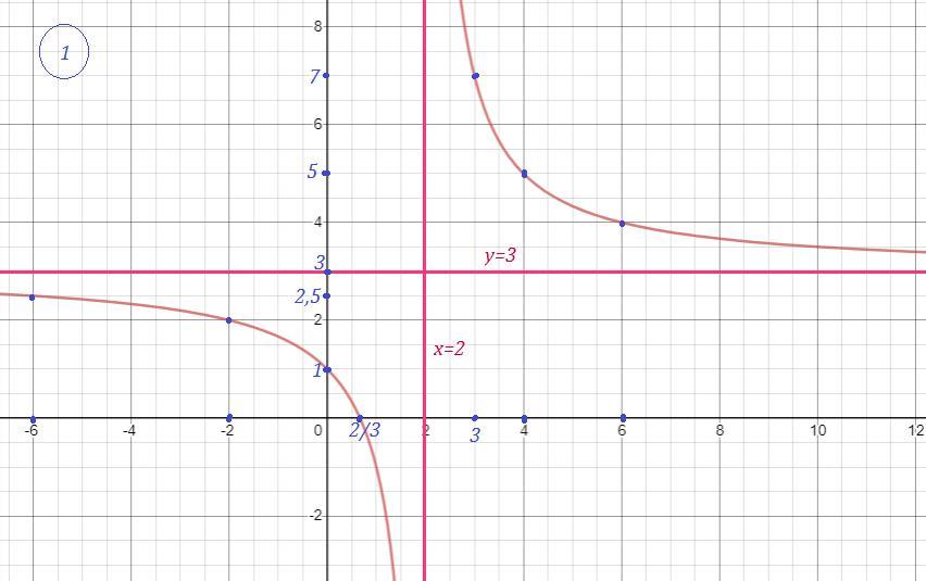 По виду получившегося равенства имеем две асимптоты: у=3 и х=2 .