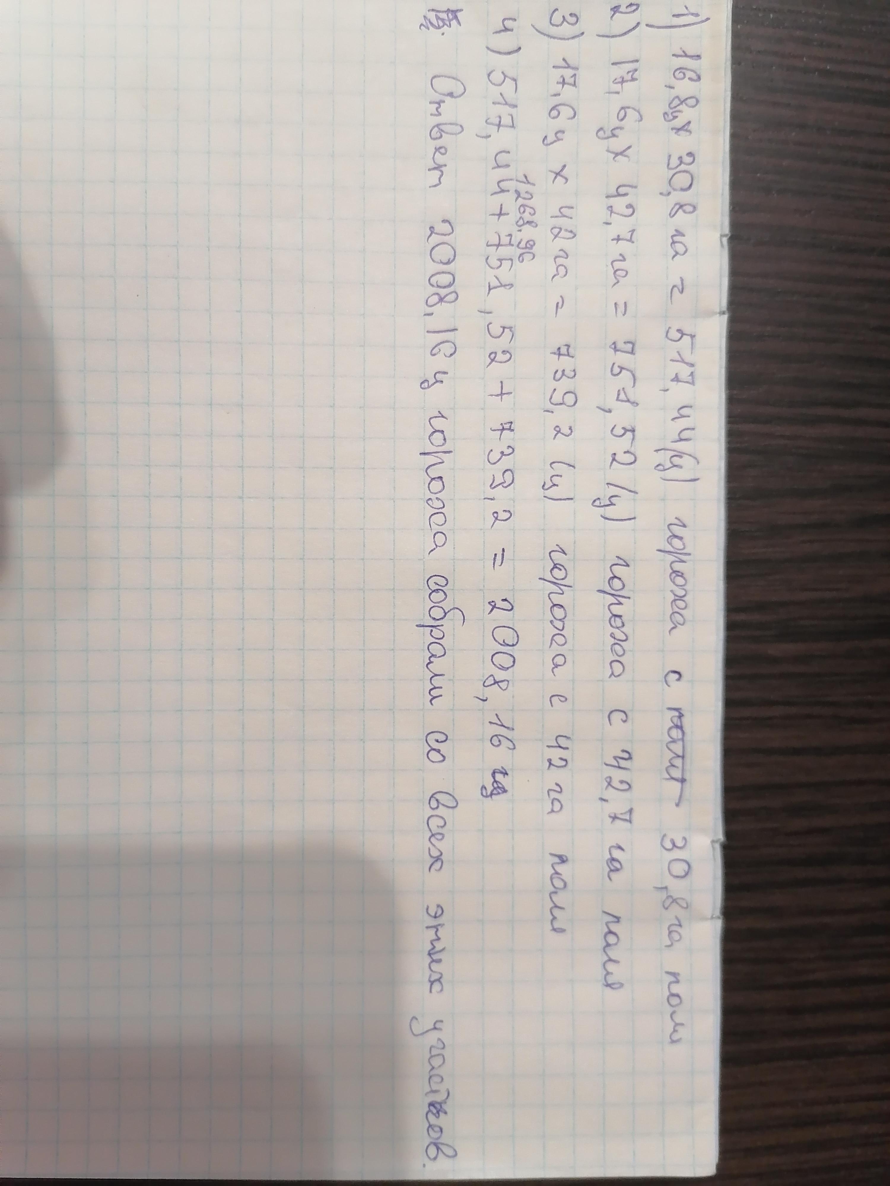 3) 42 * 17,6 = 739,2 ц - с третьего поля