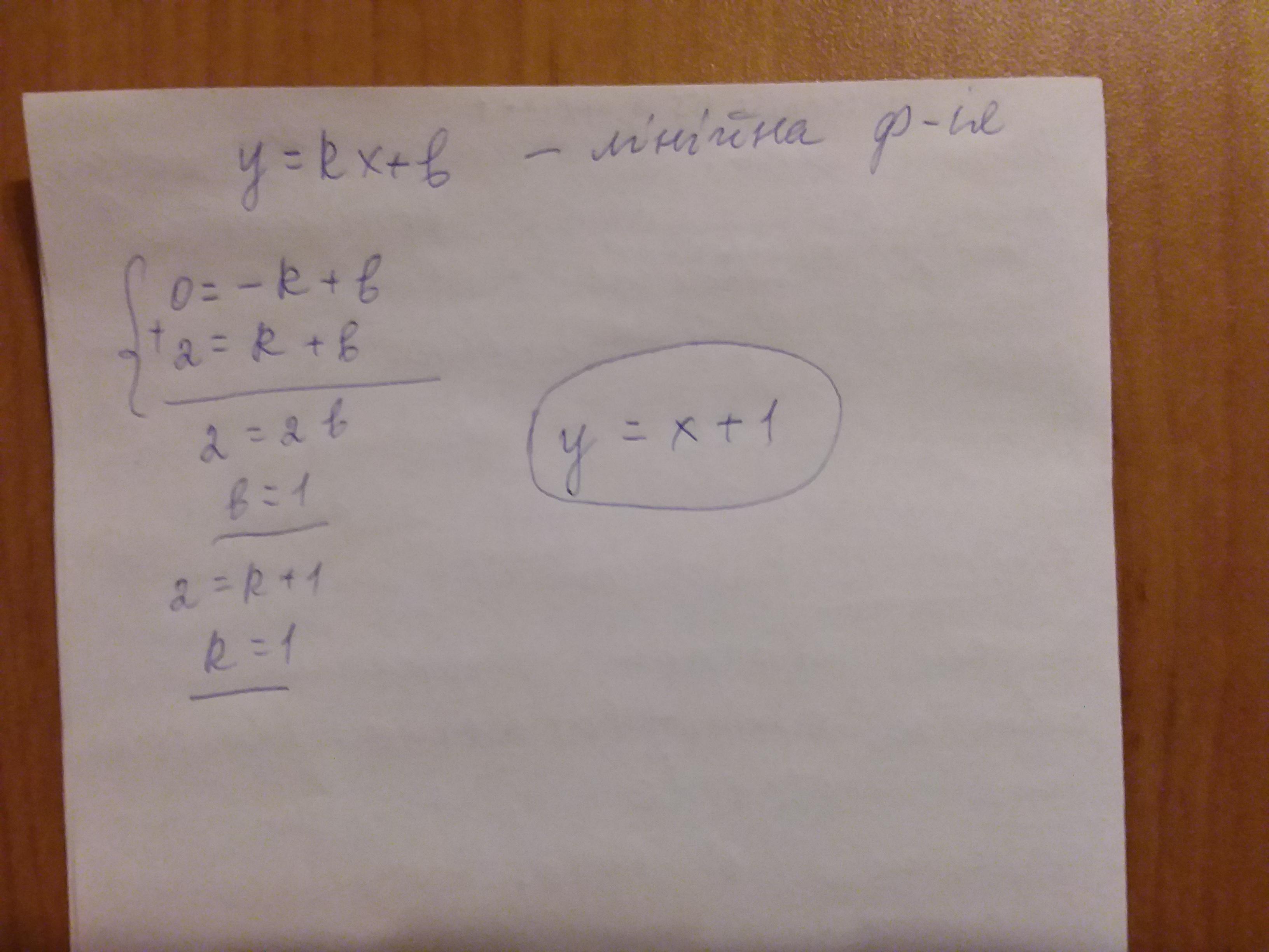 Скласти формулу лінійної функції графік якої проходить через точки A(-1 0) B(1 2)