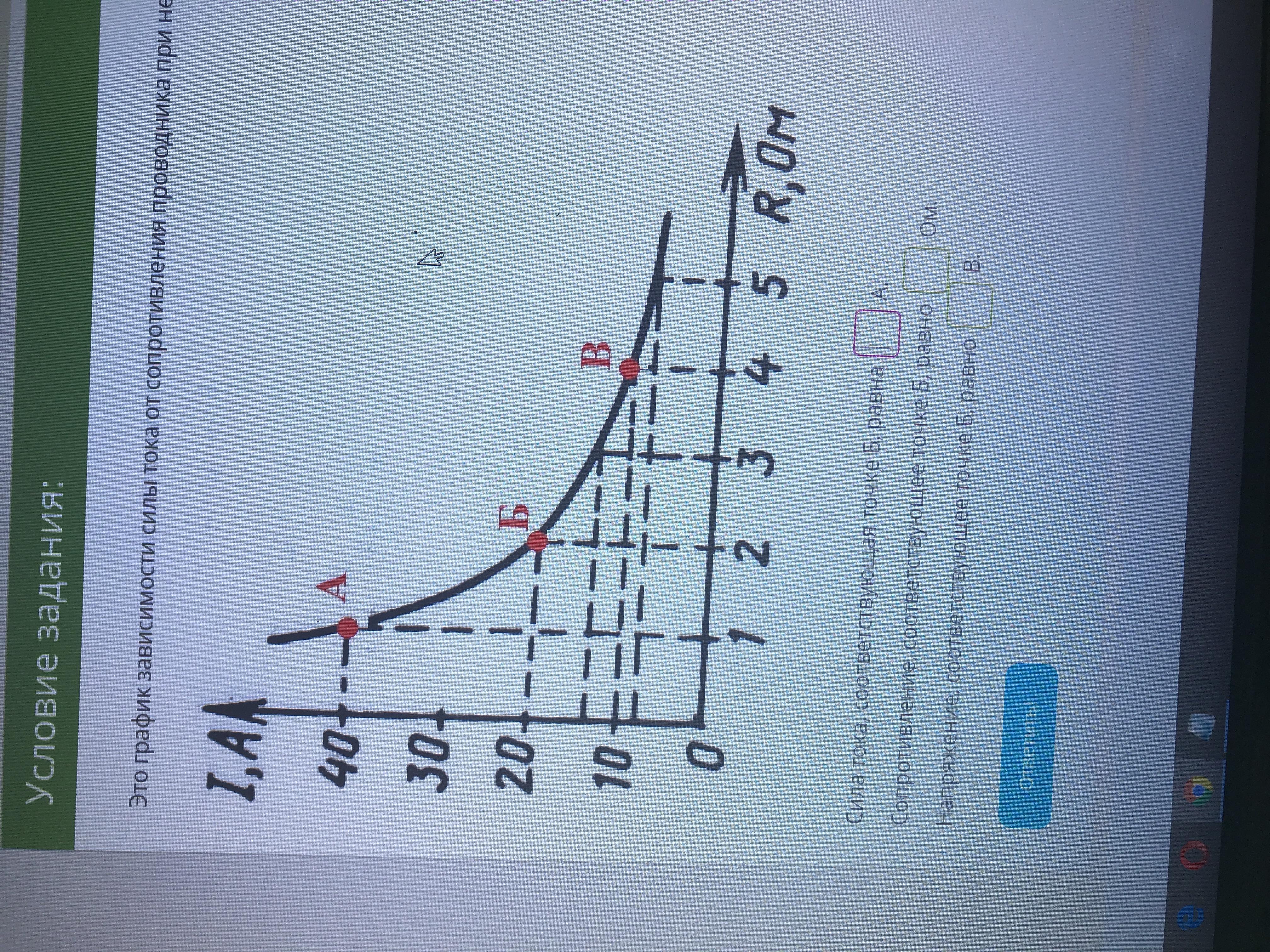 Это график зависимости силы тока от сопротивления проводника при неизменном напряжении