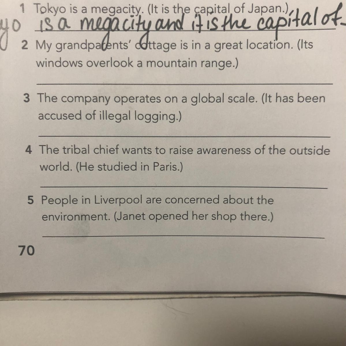 2.My grandparents' cottage is in a great location. The windows of cottage overlook a mountain range.