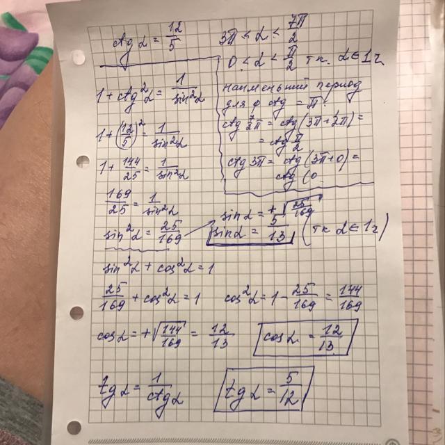 найти cos a tg a sin a если ctg =12/5