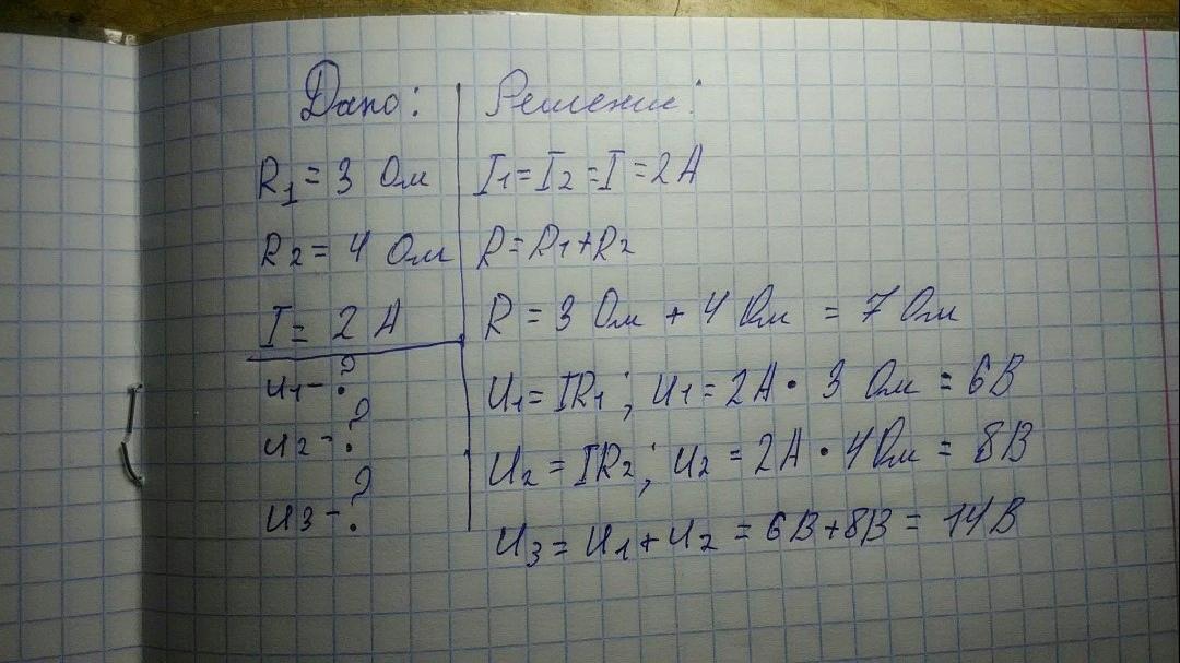 1)U=IR=0,8*320=256 B 3)Т.к. соединение последовательное, то Roб=R1+R2, I1=I2=I. Тогда U1=IR1=1*4=4 В, U2=IR2=4*3=12 В, Rоб=R1+R2=4 Ом