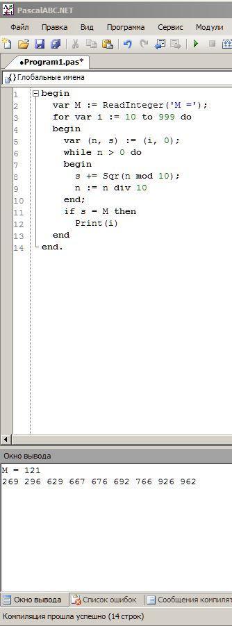 дано натуральное число M найти все двух и трех значные числа,сумма квадратов цифр которых равна M