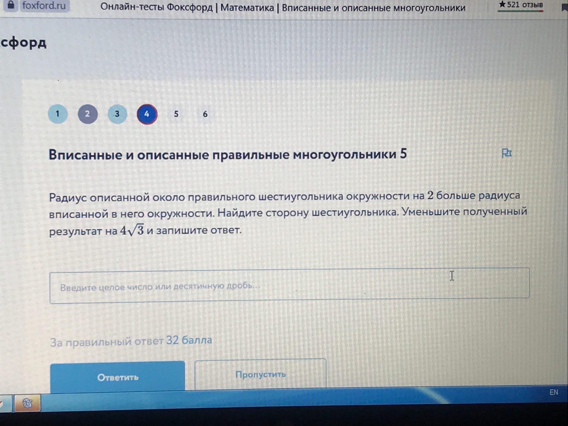 вписанной в него окружности. Найдите сторону шестиугольника. Уменьшите полученный