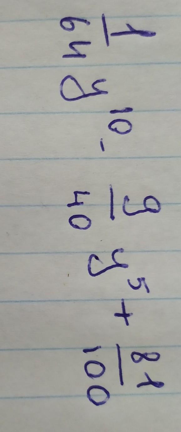В первой ячейке в знаменателе стоит 64, в числителе у, в ячейке показателя степени 10, минус в ячейке числителя 9, в ячейке знаменателя 40, в ячейке показателя степени 5, плюс в ячейке числителя 81 , в ячейке знаменателя 100.