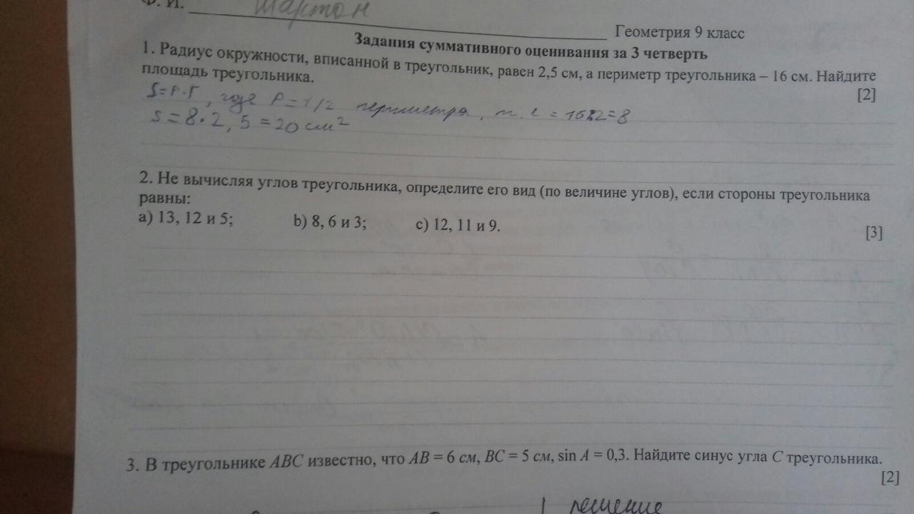 2задание не вычисляя углов треугольника определте его вид если стороны треугольника равны