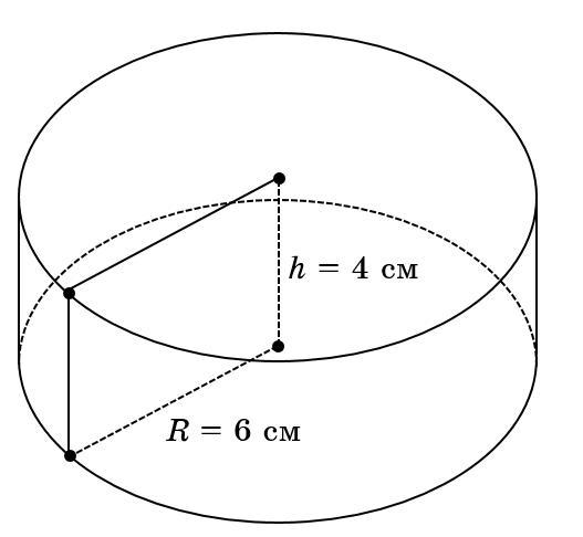 5.Прямоугольник, стороны которого равны 6см и 4см, вращается около меньшей стороны. Найдите площадь полной поверхности тела вращения и объем.