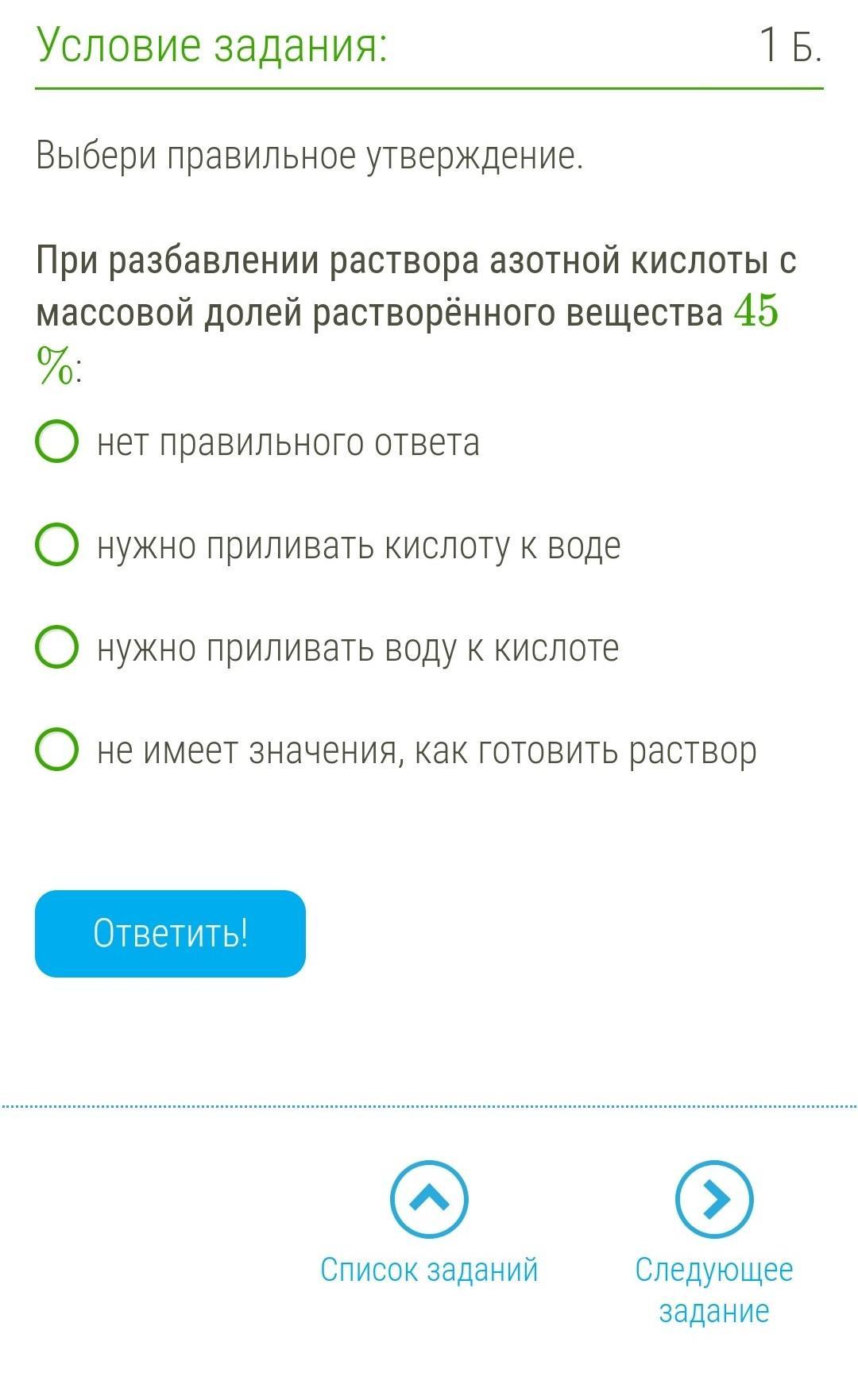 Нужно приливать кислоту к воде