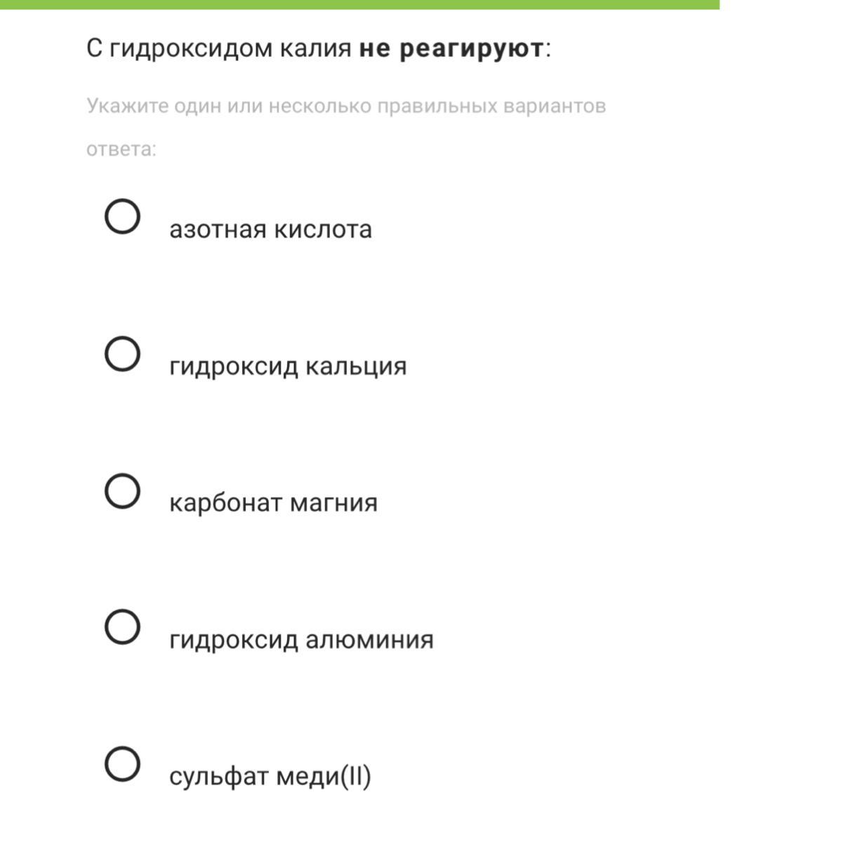 С гидроксидом калия не реагируют: гидроксид кальция, карбонат магния