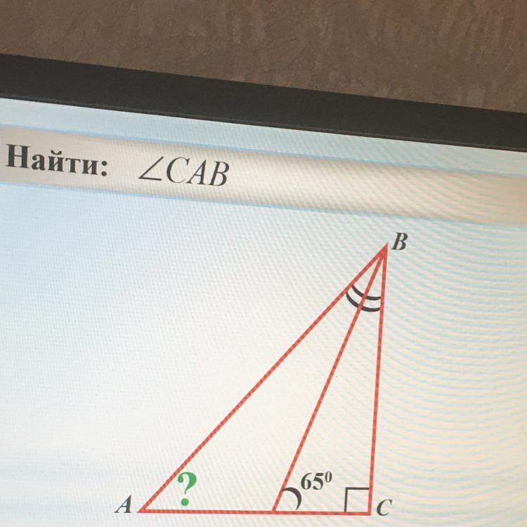 Рассмотрим ∆ВСD, это прямоугольный ∆.Сумма острых углов в прямоугольном треугольнике равна 90°. угол DBC=90°-65°=25°. Т.к. ВD- биссектриса, то угол DBC= угол DBA=25°. угол В=уголDBC+ уголDBA=25°×2=50°. Рассмотрим ∆АВС: угол А=90°-уголВ=90°-50°=40°