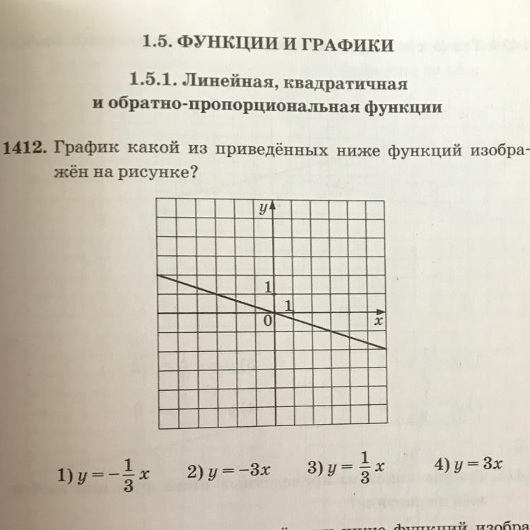 Существует формула для составления уравнения линейной функции по координатам двух точек. Из рисунка видно, что график проходит через две точки (с помощью координат которых можно составить уравнение (-3; 1) и (3; -1):