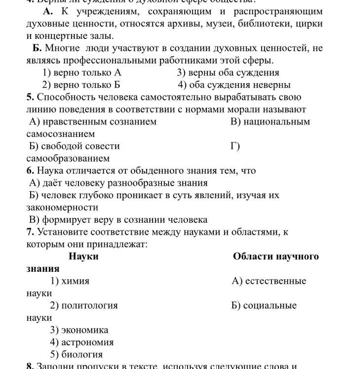 7 1) А, 2)Б, 3)Б, 4)А, 5)А