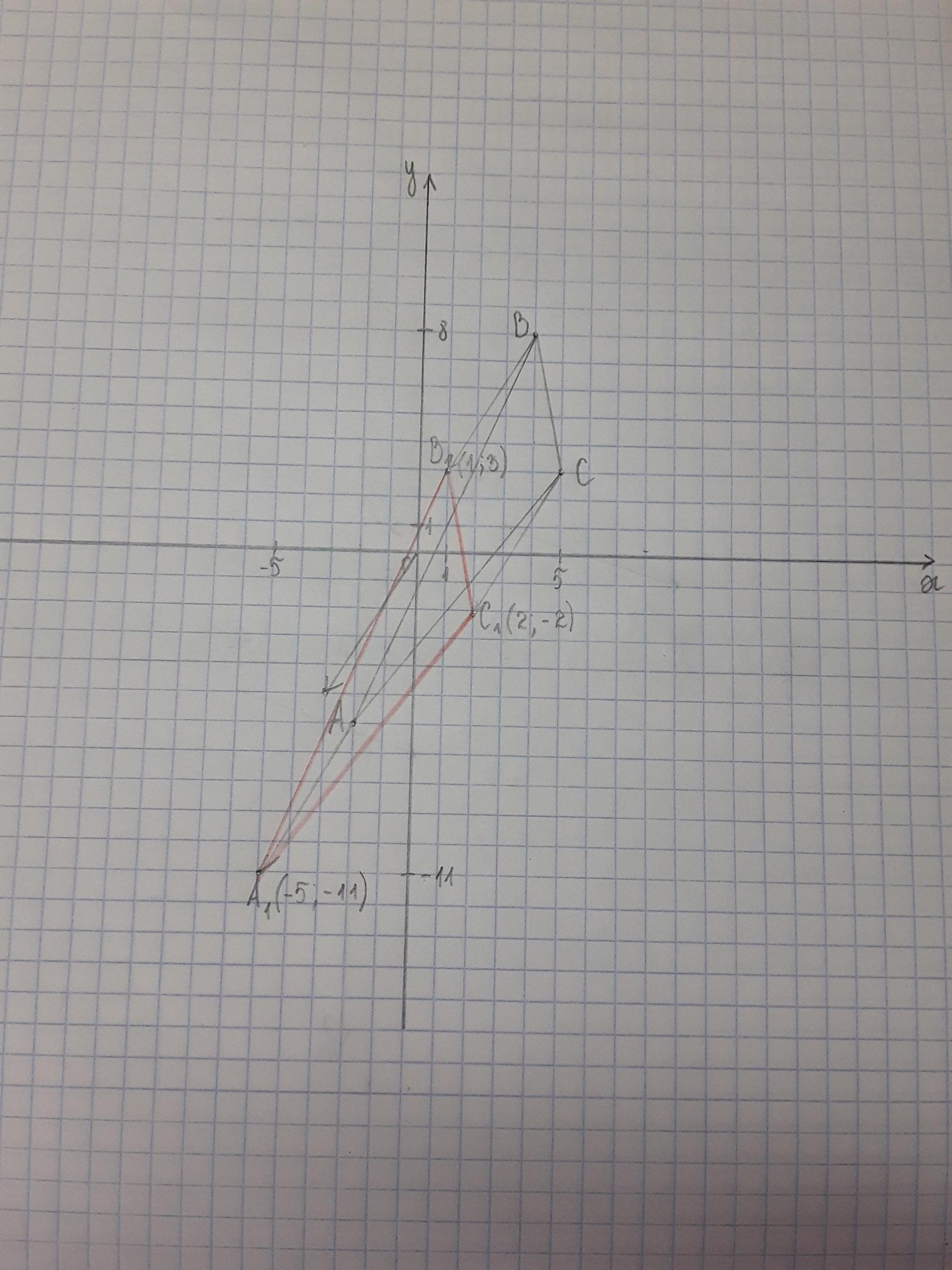 Треугольник A₁B₁C₁ с вершинами A₁(-5;-11), B₁(1;3), C₁(2;-2)
