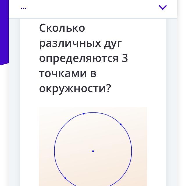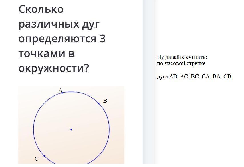 Если точки на окружности К, Т, Р, то тогда дуги КТ, большая и малая, или если К и Т - точки, диаметра, то две равные, аналогично по две КР и ТР. Всего шесть.