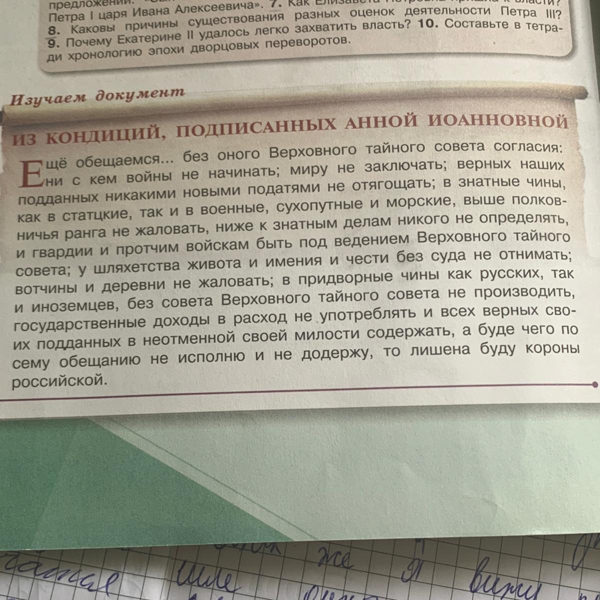 Как называется эпоха, к которой относится данный документ? Некоторые историки называют кондиции «первой конституцией России». Объясните их точку зрения. Согласны ли вы с ней?