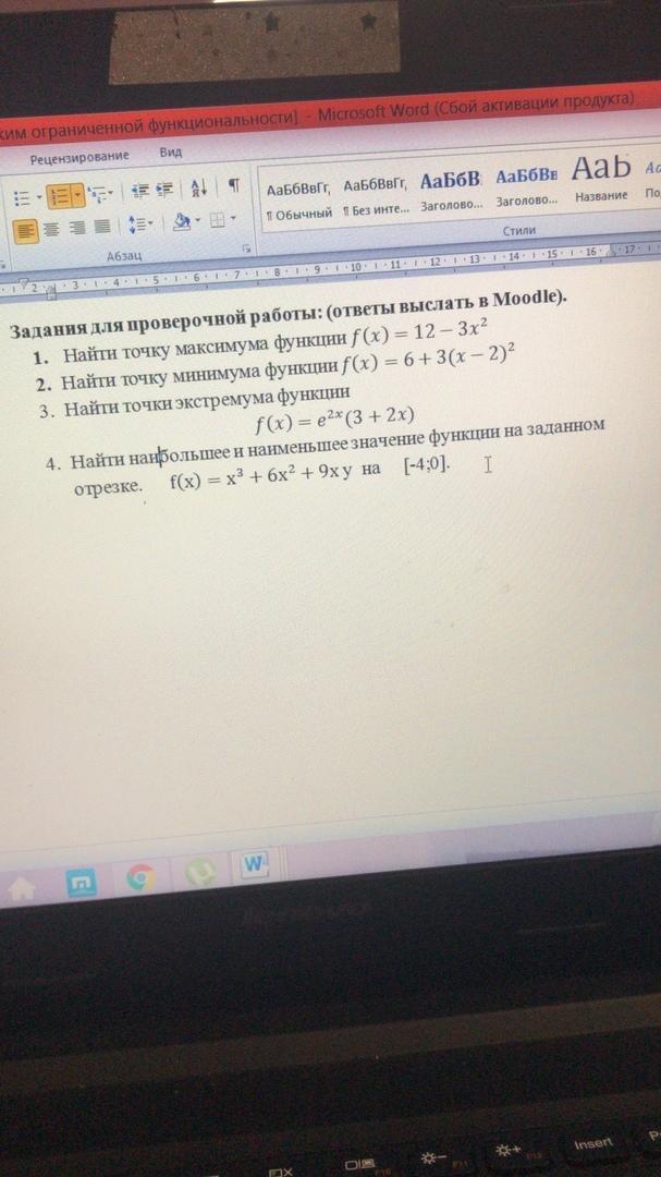 4 + 2x = 0; x = -2; y(-2) = e^(-2*2)*(3 + 2(-2)) = e^(-4)*(3 - 4) = -e^(-4)
