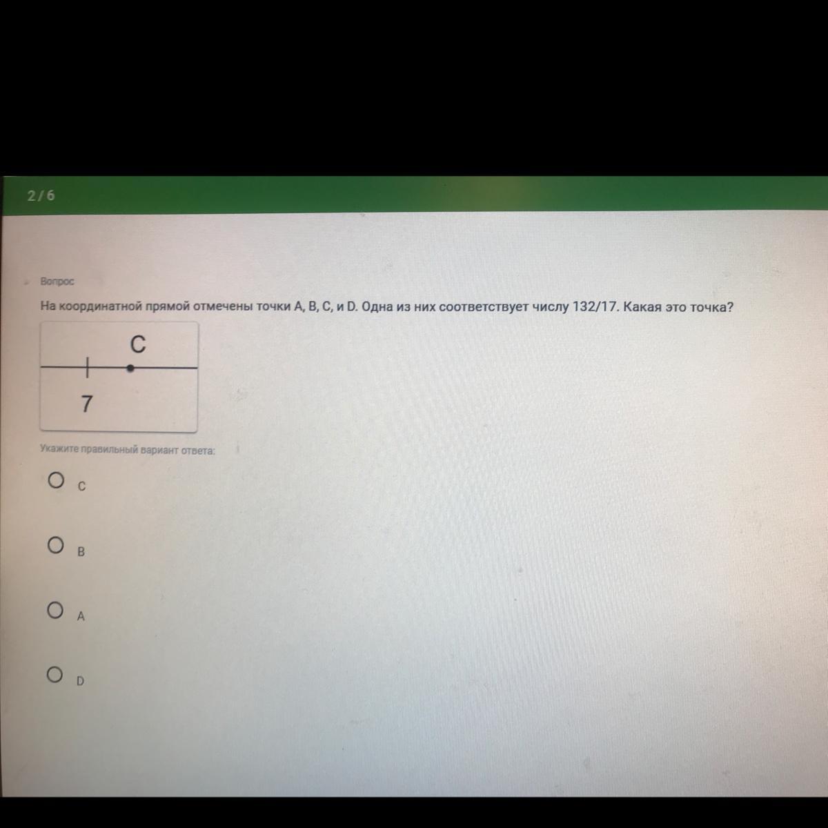 на координатной прямой отмечены точки A,B,C,и D. Одна из них соответствует числу 132/17. Какая это точка?