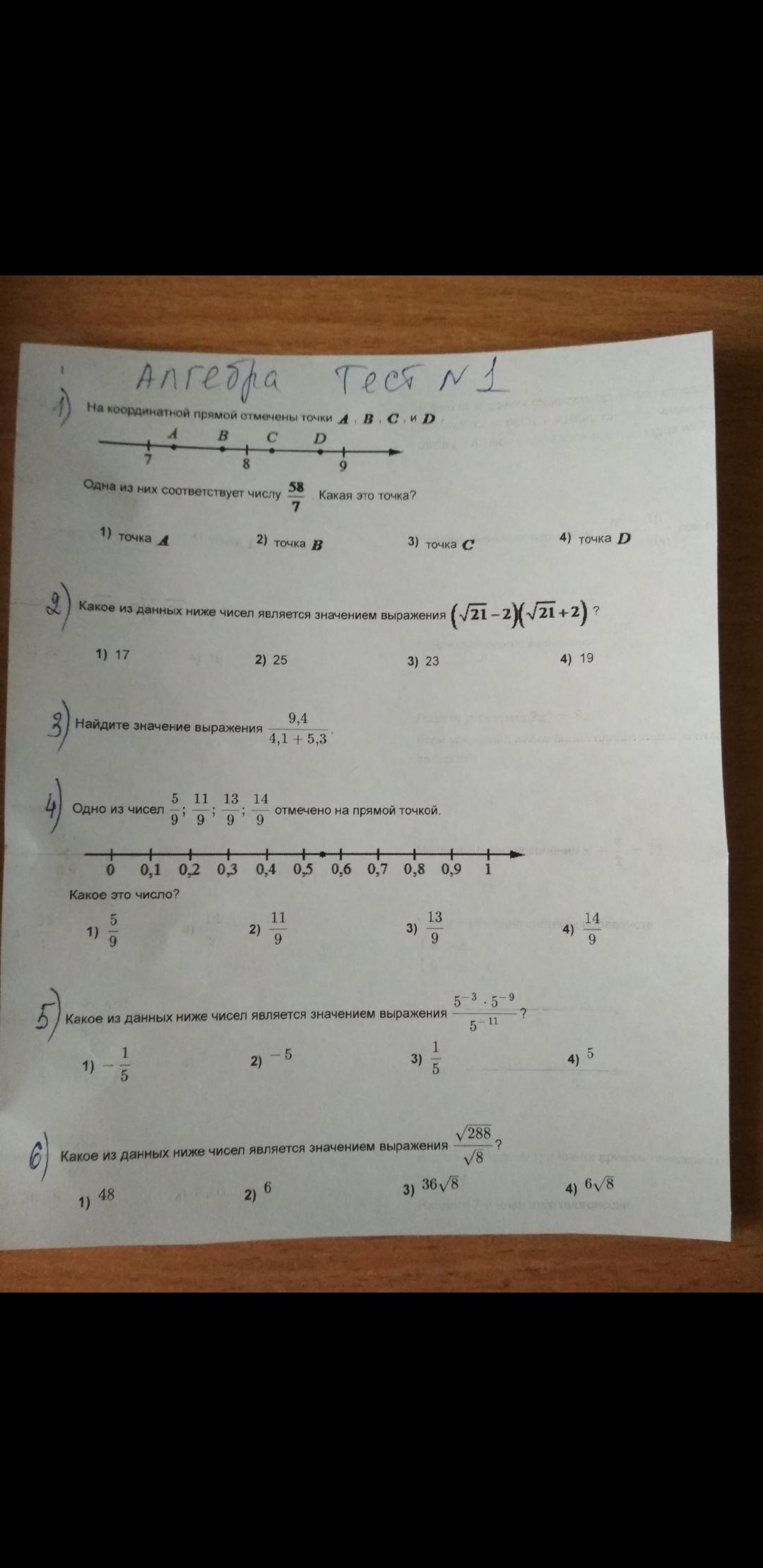 Пошаговое объяснение: ко второму (√21-2)(√21+2)= 21-4= 17 сворачиваем по формуле разность квадратов. К третьему в знаменателе складываем и получаем 9,4 делим числитель на знаменатель получаем 1. К четвертому т.к. 5/9 правильная дробь она меньше 1, а все остальные числа, которые представлены больше