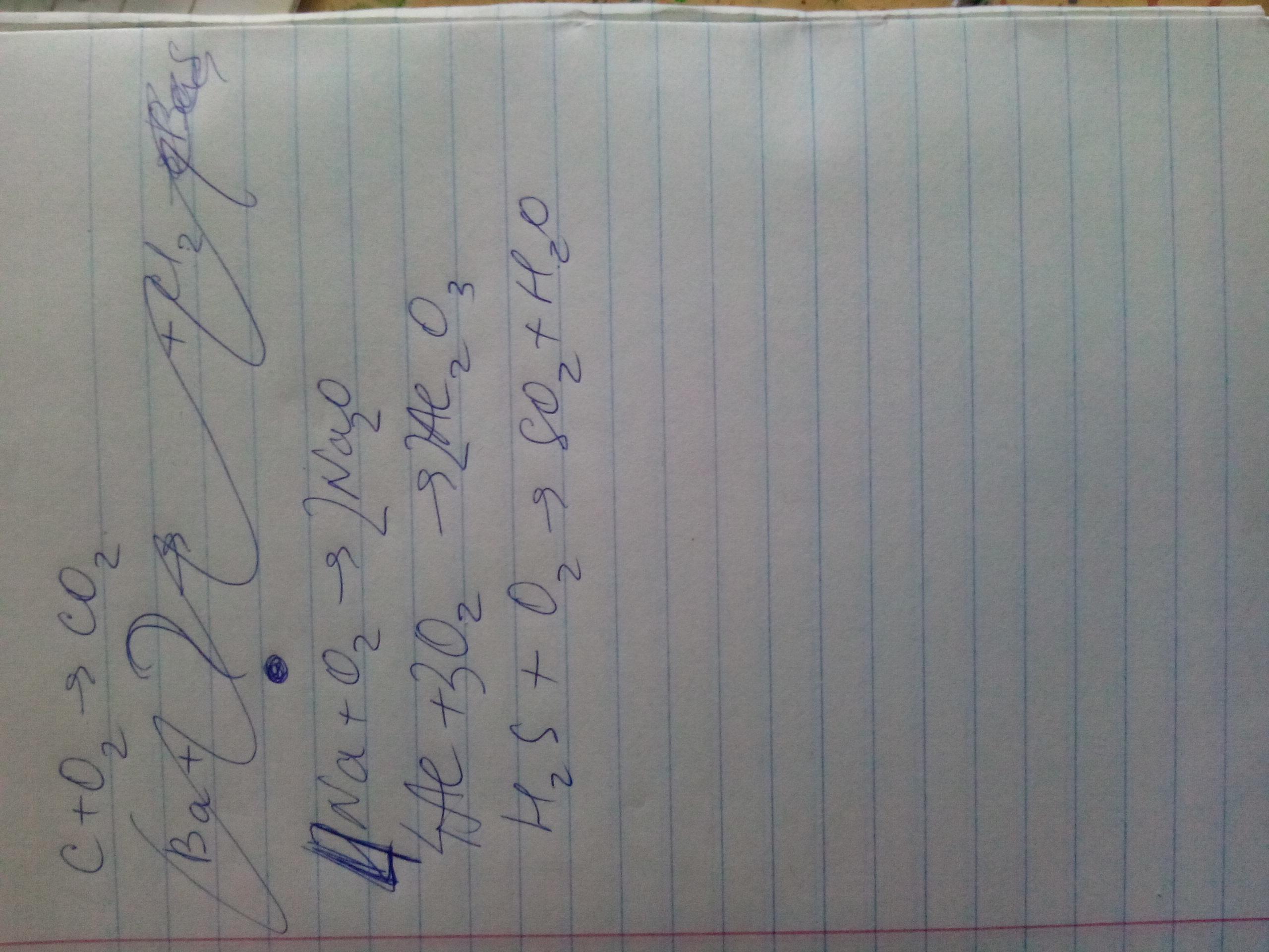 Допишіть рівняння хімічних реакцій: ... + O2 → CO2 Ba + ... → ... + Cl2 → Ba S Al Cl3 Na + O2 → ... Al + ... → Al2O3 H2S + O2 → SO2 + H2O