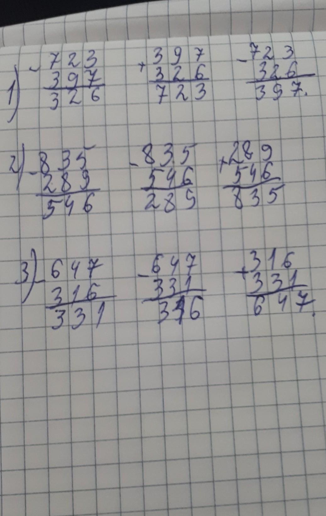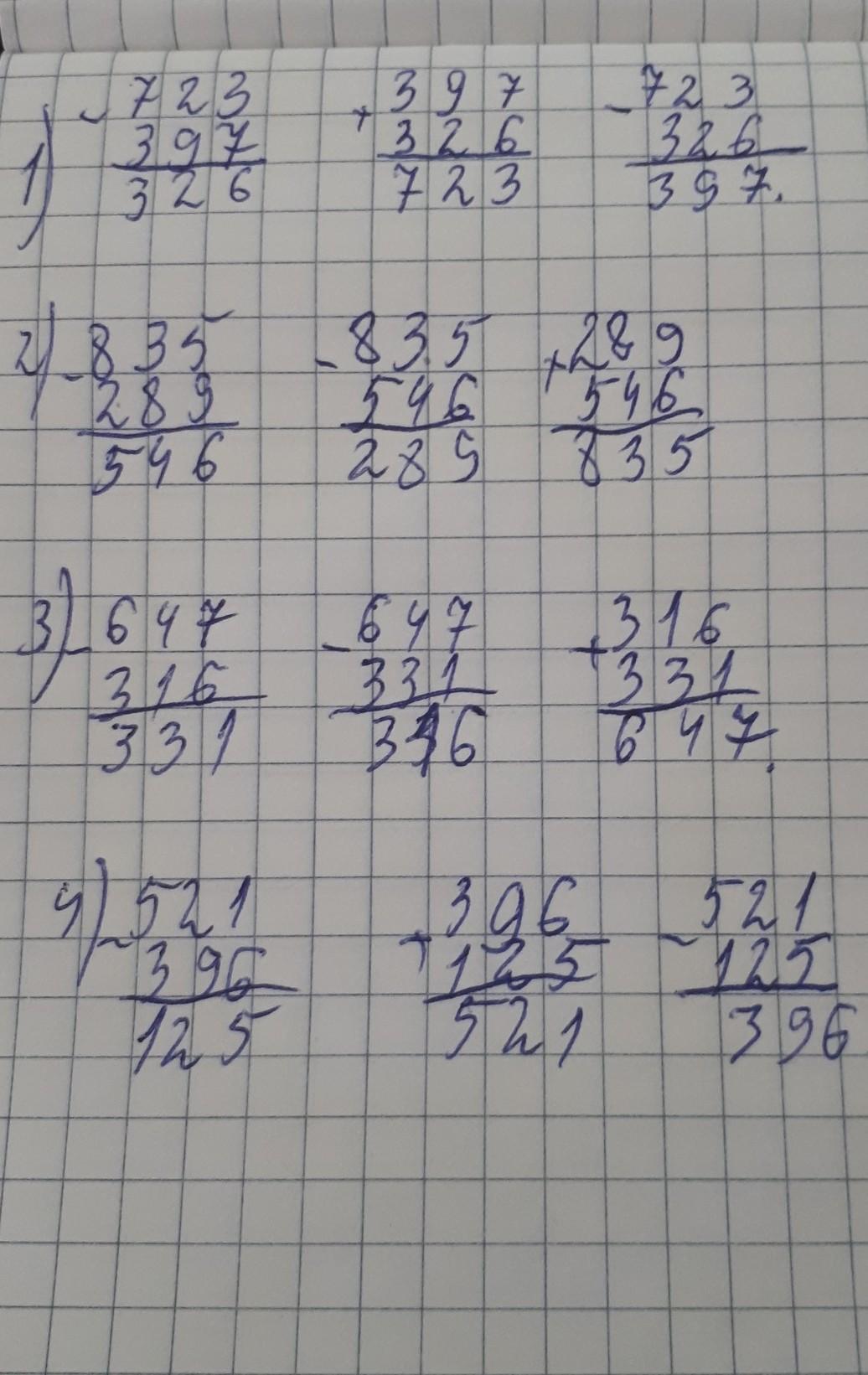 Помогите пожалуйста! Найти значения выражений способом округления и проверь результаты. 723-397; 835-289; 647-316; 521-396: